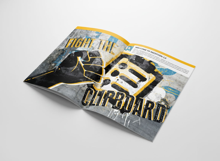 Revolution am Empfang: Für das Softwareunternehmen metaSEC entwickelten wir eine umfangreiche Produktbroschüre zur Lösung JAMES. Unter dem rebellischen Slogan »Viva la Prozess« bricht das Konzept mit veralteten Strukturen im Besuchermanagement. Durch ein mutiges, lautstarkes visuelles Erscheinungsbild haben wir ein Statement gesetzt, das bei Partnern und Kunden einen bleibenden, nachhaltigen Eindruck hinterlässt.