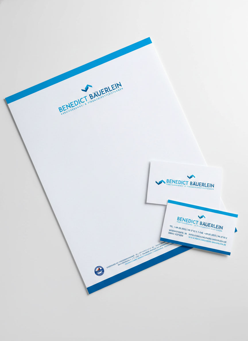 Du bist hier: Startseite1 / VOM EXISTENZGRÜNDER ZUR MARKE: VERSICHERUNG BÄUERLEIN2 / Entwicklung von Visitenkarten und Geschäftspapieren für den Versicheru...