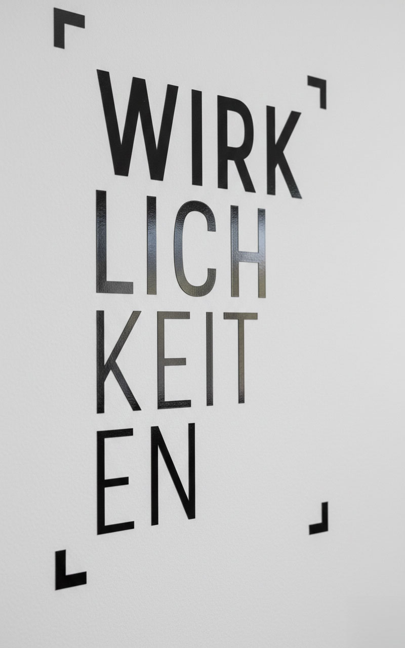 Du bist hier: Startseite1 / WIRKLICHKEITEN: UNTERNEHMERPORTRAITS IM FOKUS2 / Folienbeschriftung des Veranstaltungslogos in den Räumlichkeiten der V...