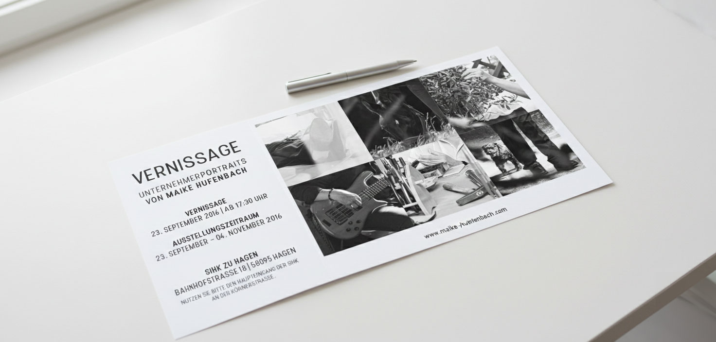 Du bist hier: Startseite1 / WIRKLICHKEITEN: UNTERNEHMERPORTRAITS IM FOKUS2 / Covergestaltung und Details der Einladungskarten für die Vernissage
