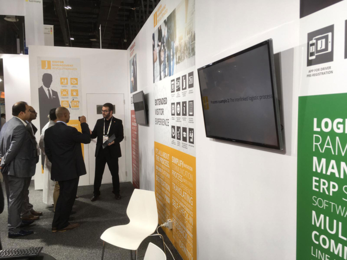 Besucher erlebten das Besuchermanagement live vor Ort. Wir bildeten die komplette Empfangssituation ab – vom klassischen Check-in via Tablet beim Personal bis hin zu Kiosksystemen für den vollautonomen Check-in. Dieser interaktive Ansatz machte die Software JAMES haptisch erlebbar und demonstrierte Prozesssicherheit in Echtzeit.